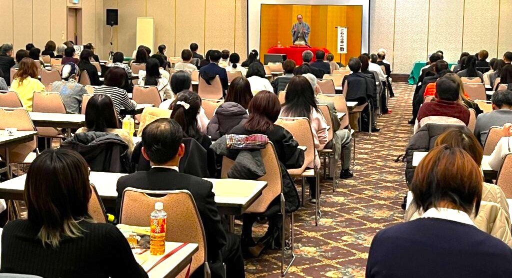 会場はホテル アウィーナ大阪。府内から110名を超えるPTA役員様や先生方が集まり、これからのPTAと家庭教育のあり方を模索する場です。 そこで私は、「キャリア落語」を使った講演とワークショップを務めさせていただきました。